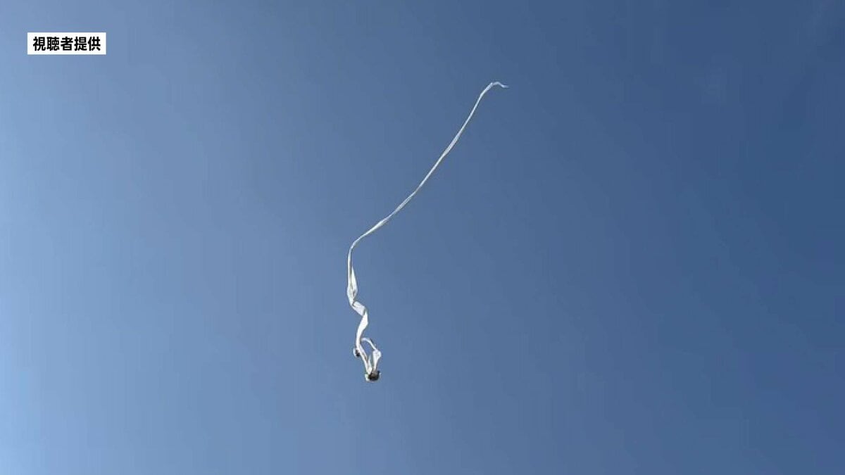 長〜〜い…まるで妖怪「一反木綿」?青空を優雅に舞う “春一番” の落とし物 見かけたら要注意 熊本県益城町未確認飛行物体? 青空に一筋伸びる、白くて長〜〜い物体。