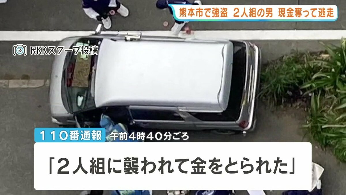 「お金を下さい」男2人が50代男性から2万円奪い逃走 熊本市の路上で強盗事件4月17日未明、熊本市中央区の路上で強盗事件があり、警察が犯人の行方を追っています。