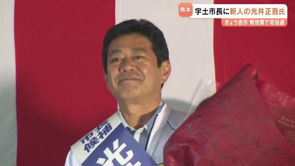 宇土市長選 新人の光井氏が無投票で初当選 熊本任期満了に伴う熊本県宇土市の市長選挙は、新人の光井正吾(みつい・しょうご)さんが無投票で...