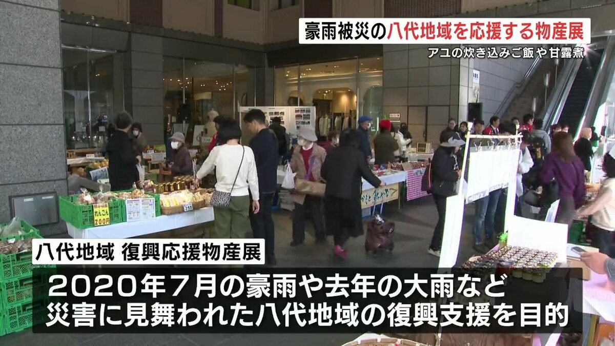 「買って応援していただける 本当にうれしい」豪雨で被災の八代地域の物産展2020年の豪雨などで被災した八代地域を応援しようと、熊本市で21日、物産展が開かれてい...