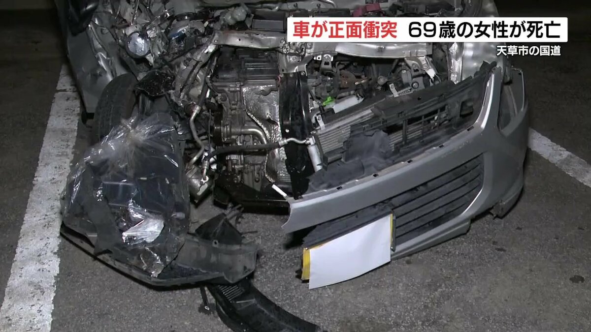 熊本県天草市で車同士が正面衝突 69歳女性死亡1月31日、熊本県天草市の国道で、車同士が正面衝突し69歳の女性が死亡しました。