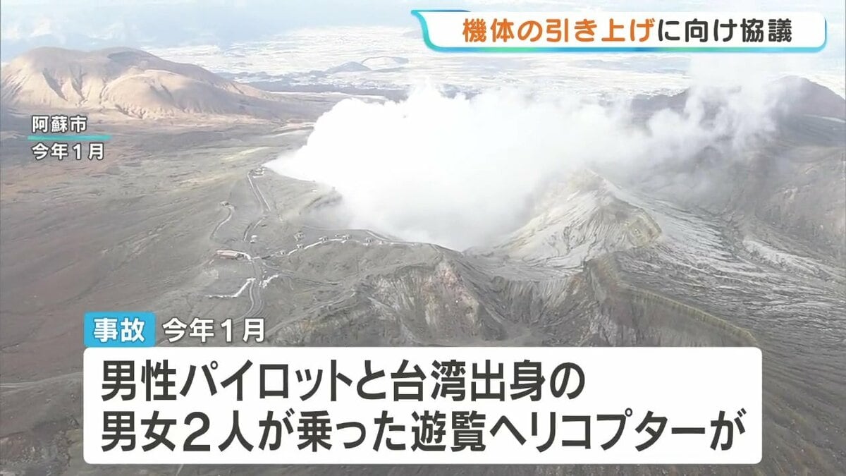 阿蘇火口ヘリ墜落事故から3か月 機体引き上げに向け協議 関係機関が臨時会合行方不明になった遊覧ヘリコプターが、阿蘇中岳第一火口の中で大破した状態で見つかった事故で...