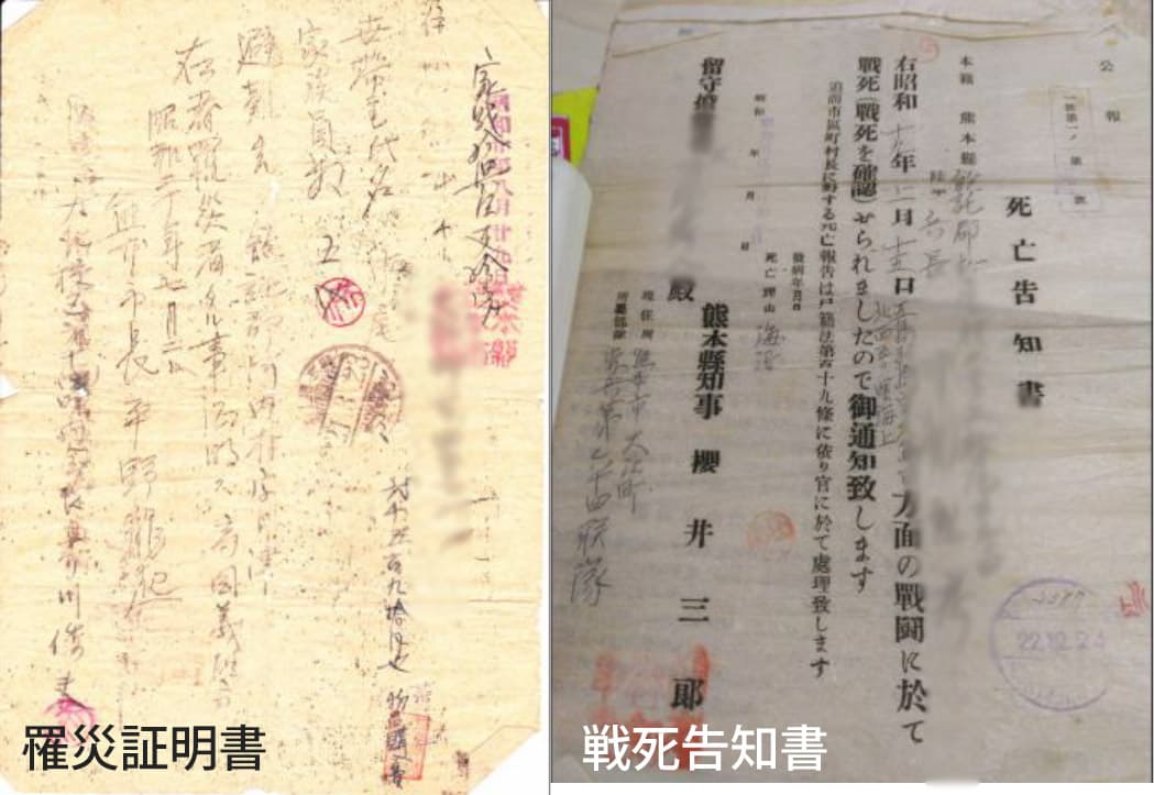 一つは、1945年熊本大空襲時の空襲による被害を証明する「罹災証明書」。