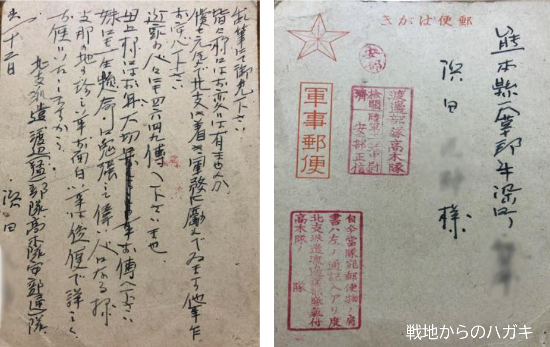 祖父の弟(当時19歳か20歳)が日中戦争のさ中、戦地から父親宛てに送ったものです。